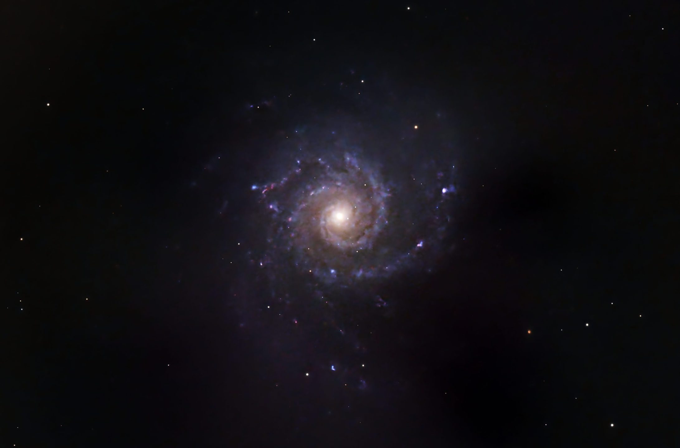 Messier 74 (also known as NGC 628 and Phantom Galaxy) is a large spiral galaxy in the equatorial constellation Pisces. It is about 32 million light-years away from Earth. The galaxy contains two clearly defined spiral arms and is therefore used as an archetypal example of a grand design spiral galaxy. The galaxy’s low surface brightness makes it the most difficult Messier object for amateur astronomers to observe. Its relatively large angular (that is, apparent) size and the galaxy’s face-on orientation make it an ideal object for professional astronomers who want to study spiral arm structure and spiral density waves. It is estimated that M74 hosts about 100 billion stars.